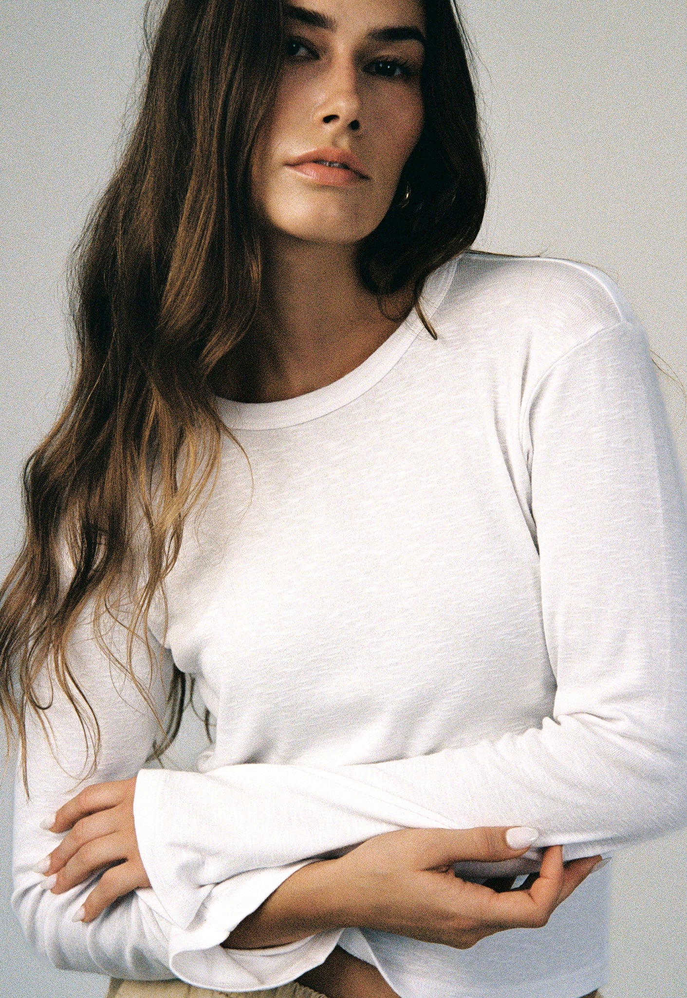 A Classic cut perfect long sleeve tee. Hits at the waist with a slightly flared sleeve. Made of vintage-inspired slub jersey and finished with a chunky binding. We love it layered under our Vintage Slub Tee for a 90's vibe.